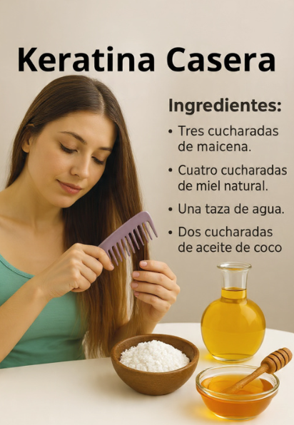 Las keratinas profesionales que se aplican en salones de belleza son tratamientos químicos complejos que utilizan formaldehído o derivados para alisar el cabello de forma semipermanente. No es posible replicar estos efectos con ingredientes caseros y naturales.
