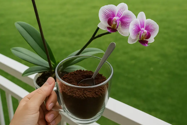 Al verter una pequeña cantidad de café molido sobre el sustrato de la orquídea, se logra un fertilizante natural de liberación lenta que enriquece el suelo de manera progresiva.